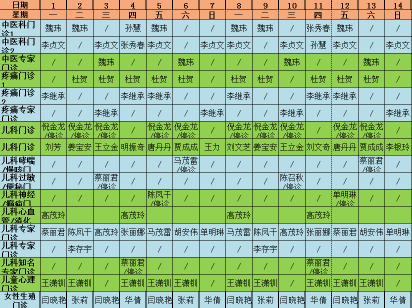 2024年1月份滕州婦幼門診醫(yī)師排班表