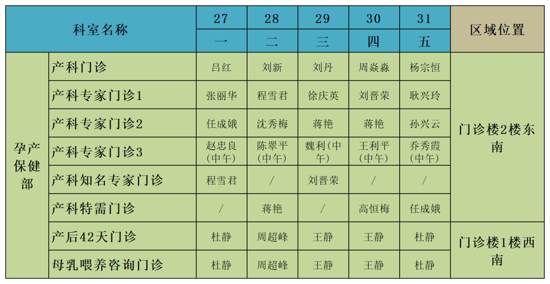 滕州市婦幼保健院(10.27-10.31)門診醫(yī)師排班表
