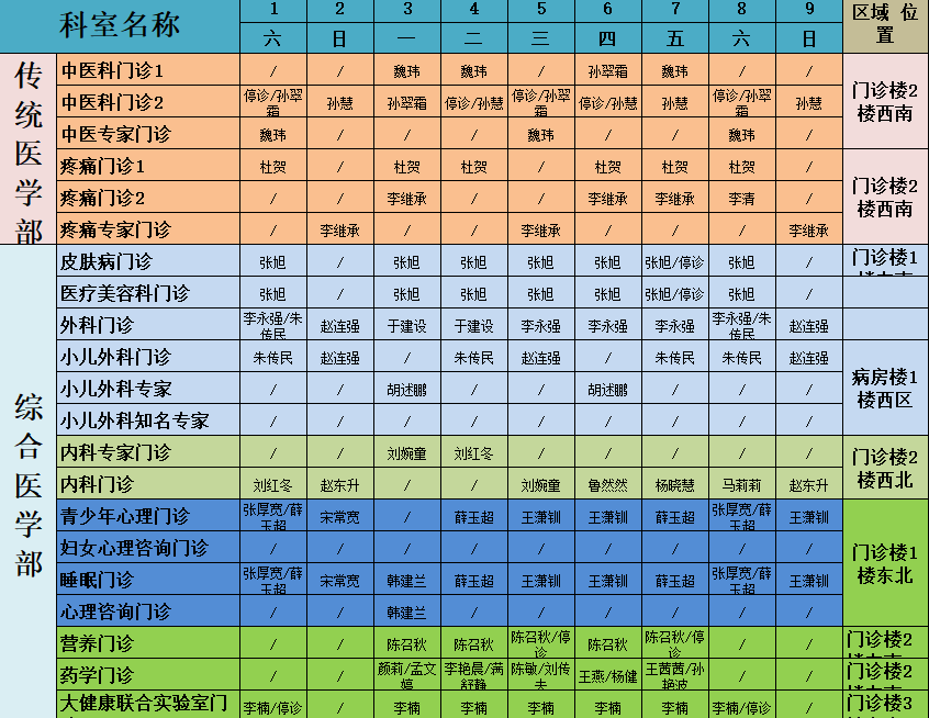 以下排班,如有臨時(shí)調(diào)整,以當(dāng)日出診信息為準(zhǔn),不便之處敬請諒解。