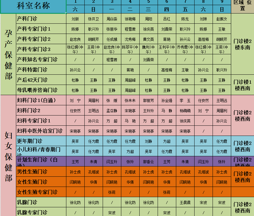 滕州市婦幼保健院(11.1-11.9)門診醫(yī)師排班表